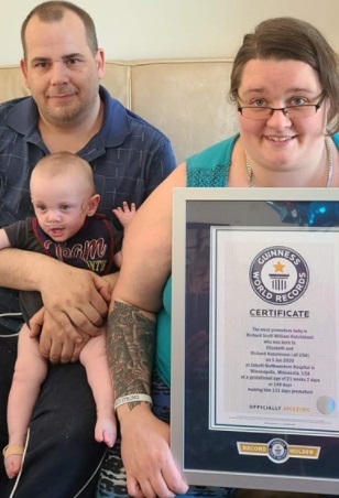 CNN은 지난 5일 집에서 가족 및 반려견들과 함께 돌잔치를 한 리처드 스콧 윌리엄 허친슨이 생존에 성공한 가장 미숙한 신생아의 사례로 기네스 월드 레코드에 올랐다고 19일 보도했다.