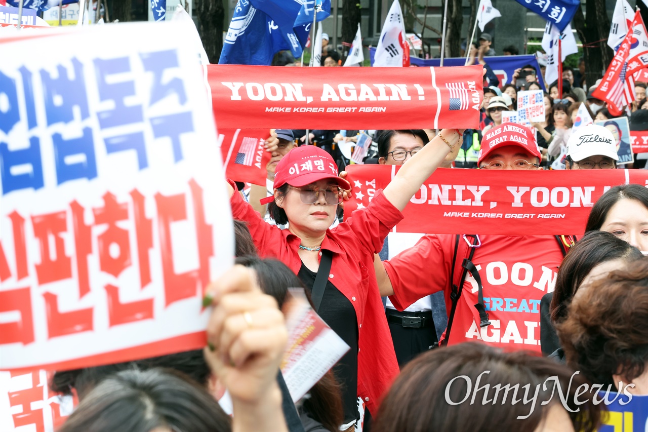 ▲국힘 장외집회에 나부낀 '윤어게인' 현수막국민의힘 주최로 지난 9월 28일 서울 시청역 인근에서 열린 사법파괴·입법독재 국민 규탄대회에서 일부 참가자들이 '윤어게인' 현수막을 펼치고 있다. ⓒ 남소연관련사진보기