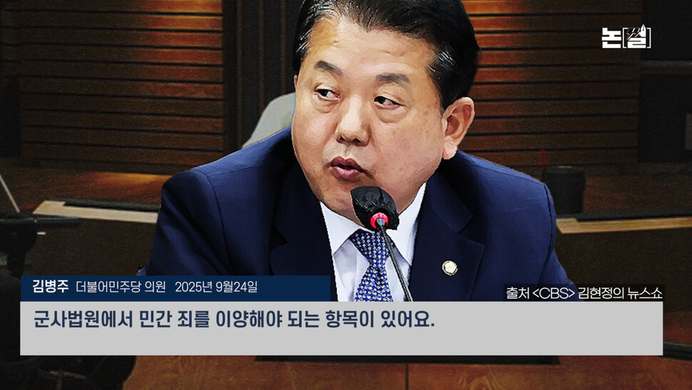 “계엄사령부가 됐든 계엄 주체 세력들한테 협조를 분명히 요청을 받고 협조했을 확률이 있습니다. 왜냐하면 계엄사령부가 있으면 군사법원에서 민간 죄를 이양해야 되는 항목이 있어요. 그럼 그런 건 어떻게 이양을 해야 될지 당연히 그런 건 논의가 됐을 거라고 보고 있거든요. … 저는 수사를 해서 여기에 대해서 명명백백히 진실을 밝히고 그 죄가 있으면 그 죄를 물어야 되는 거죠. 그것이 국민들이 실제 원하는 것이기도 합니다.”(김병주 민주당 최고위원, 24일 CBS ‘김현정의 뉴스쇼’)