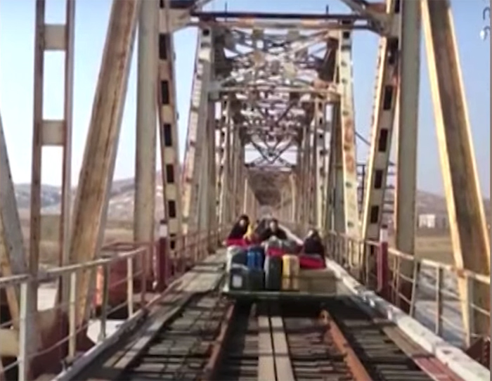25일(현지시간) 러시아 스푸트니크 통신과 미국 북한전문매체 NK뉴스 등에 따르면 러시아 외무부는 평양 주재 러시아 대사관 직원과 가족 등 8명이 이날 두만강 철교로 양국 간 국경을 넘으면서 아무도 도와주는 사람이 없어 짐을 실은 철로 궤도 수레를 직접 밀었다고 밝혔다.
