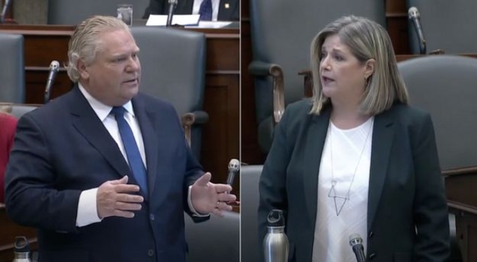 안드레아 호와스 온타리오 NDP대표가 주정부의 봉쇄 완화에 관한 의회 회의 도중 더그 포드 수상이 자신에게 성차별적인 발언을 한 것에 대해 온타리오의 모든 여성들에게 사과할 의무가 있다고 주장했다