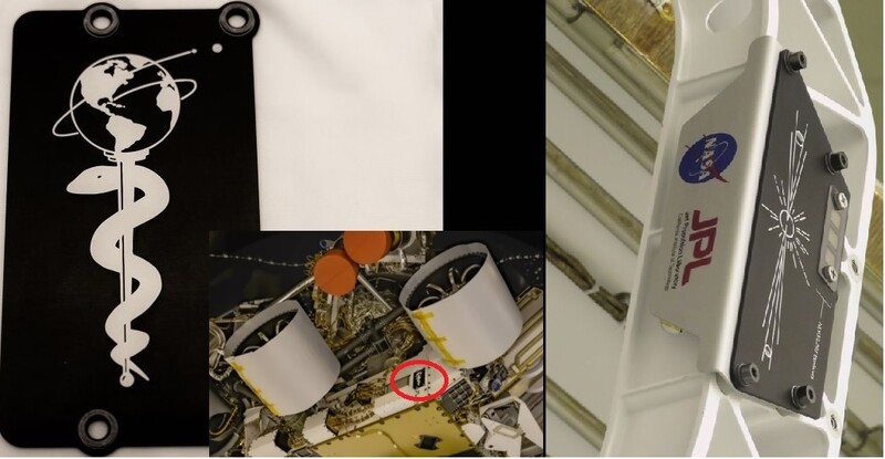 코로나19 전염병과 싸우고 있는 의료인들에 대한 경의의 뜻을 담은 알루미늄판도 퍼시비어런스 아래쪽 바퀴 옆 섀시에 부착돼 함께 갔다. 지구를 떠받치고 있는 지팡이와, 이를 휘감고 있는 뱀을 형상화한 것인데 의술을 상징하는 이미지라고 한다.