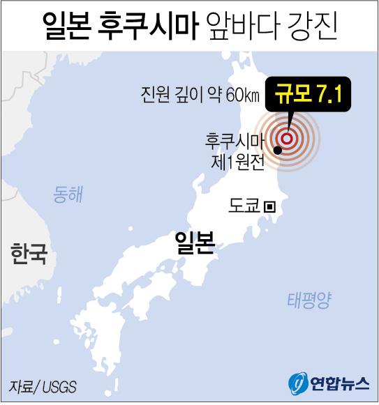 규모 7.3 강진에 후쿠시마원전 사용후 연료 수조서 물 넘쳐