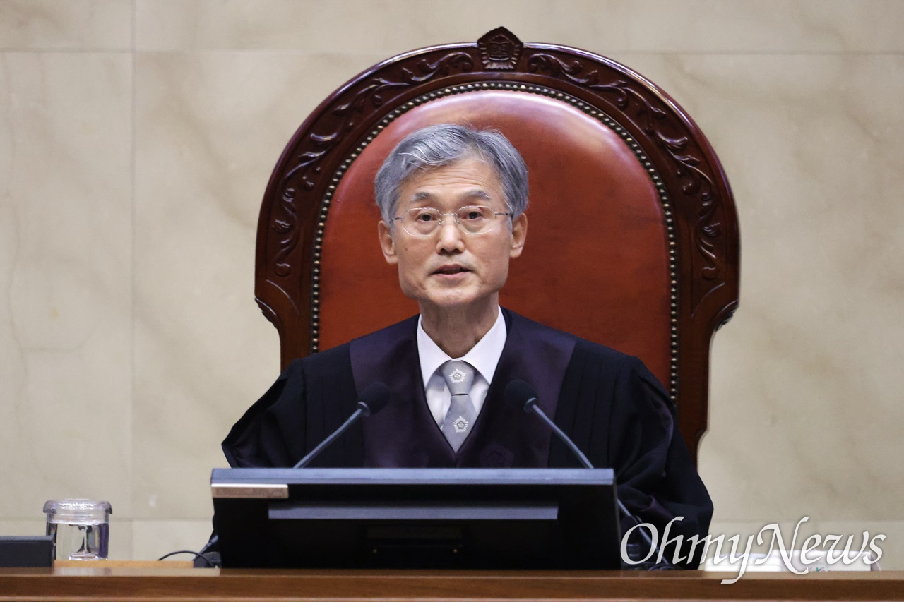 ▲조희대 대법원장이 5월 1일 오후 당시 더불어민주당 이재명 대선 후보의 공직선거법 사건 전원합의체 선고를 위해 서울 서초구 대법원 대법정에 입장해 장내 정돈을 선언하고 있다. ⓒ 사진공동취재단관련사진보기