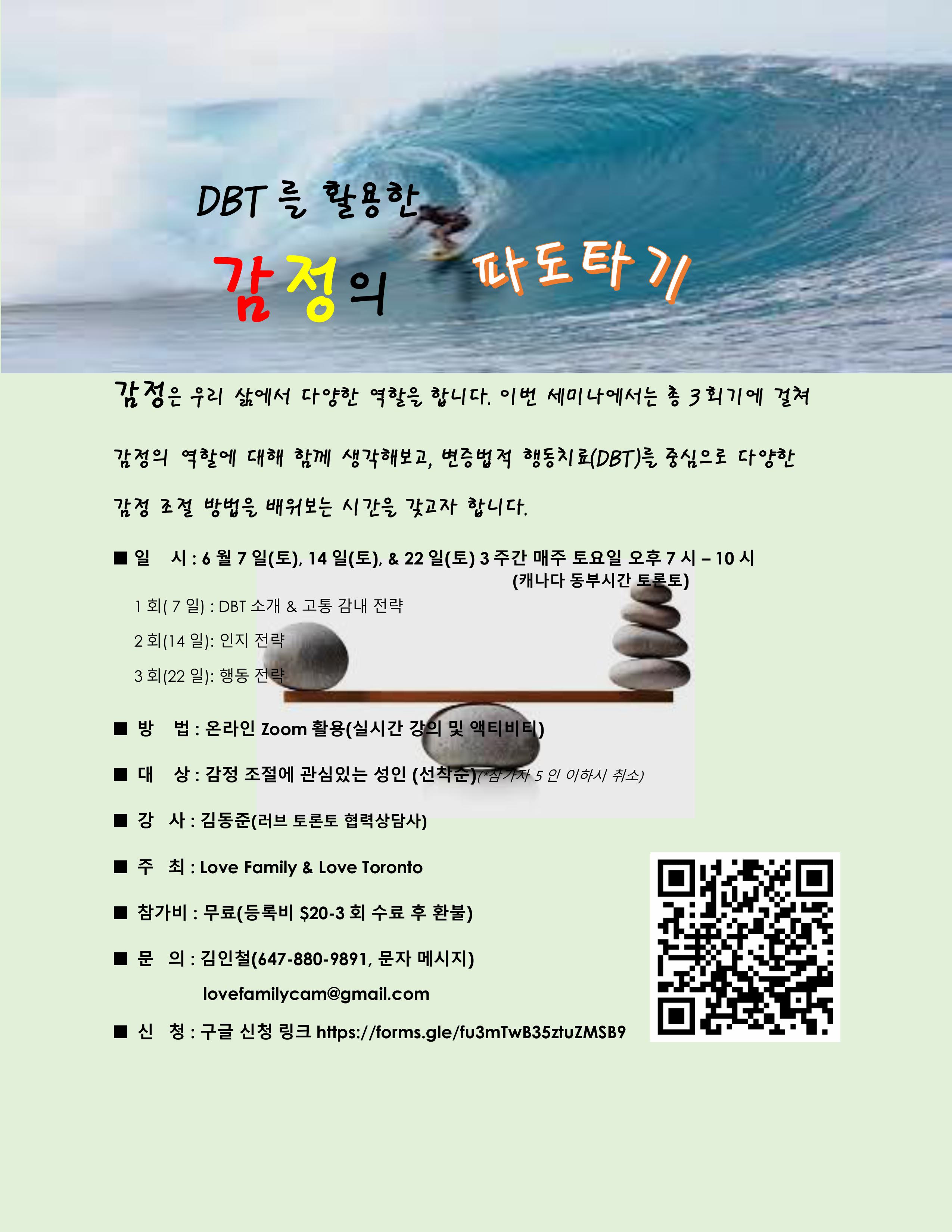 | 러브패밀리, 'DBT 를 활용한 감정의 파도타기' 무료 온라인 세미나 (0) | 2025.05.03 |