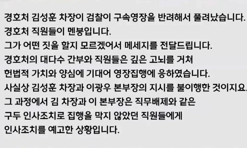 | [윤석열 내란] 경호처 직원 “풀려난 김성훈, 어떤 보복 할지…직위해제 해달라” (0) | 2025.01.20 |