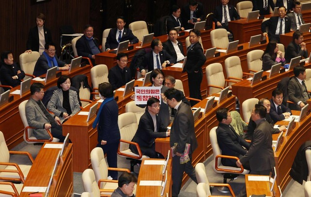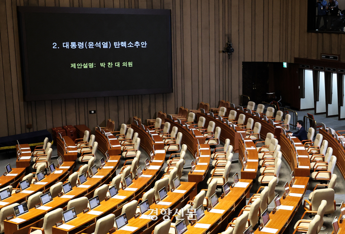 국민의힘은 전날 당론으로 윤석열 대통령 탄핵소추안을 부결시키기로 했고, 정족수 미달로 표결은 불성립됐다. 한동훈 국민의힘 대표는 이날 국민의힘 당사에서 발표한 담화에서 “질서 있는 대통령의 조기 퇴진으로 대한민국과 국민에게 미칠 혼란을 최소화하면서 안정적으로 정국을 수습하고 자유민주주의를 바로 세워겠다”며 “퇴진 전이라도 대통령은 외교를 포함한 국정에 관여하지 않을 것”이라고 밝혔다.