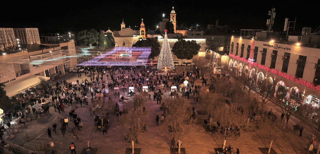 이날 베들레헴의 명소 구유 광장(Manger Square)에는 수백 명 정도가 크리스마스 분위기를 만끽했다. 그나마 1년 전보다는 들뜬 분위기다. 작년에는 퍼레이드가 텅 빈 거리를 통과해야 했다. 팬데믹 전에는 전세계에서 순례자 수천 명이 몰려와 이 거리를 가득 채웠었다.