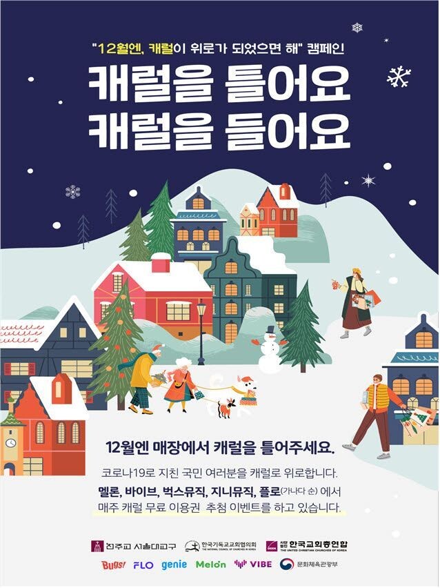 앞서 문체부와 천주교 서울대교구·한국기독교교회협의회, 지상파 라디오, 음악서비스 사업자는 12월1~25일 캐럴 활성화 캠페인을 함께 추진할 예정이었다. ‘코로나19로 지친 국민을 위로하고 밝은 사회 분위기를 조성한다’는 취지로, 음원사이트 멜론 등 음악서비스 이용자 3만명에게 캐럴을 들을 수 있는 이용권을 지급하는 행사였다. 여기에는 정부 예산 10억원이 지원되는 것으로 전해졌다. 그러나 캠페인에 대한 종단협의 반발이 거세지자 문체부는 지난 2일 ‘캠페인에 참여하지 않겠다’면서도 “종교계가 시행주체로 진행하고 있는 프로그램은 취소하기 어렵다”는 뜻을 밝혔다. 신민정 기자