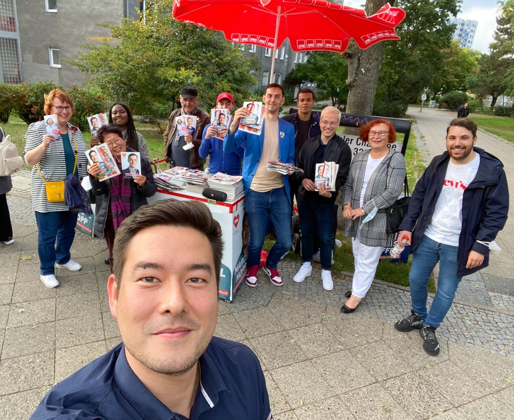 선거운동하는 마르셀 홉 베를린시의원 당선인. 역시 어머니가 한국인이다. [마르셀 홉 베를린시의원 당선인 트위터 갈무리]