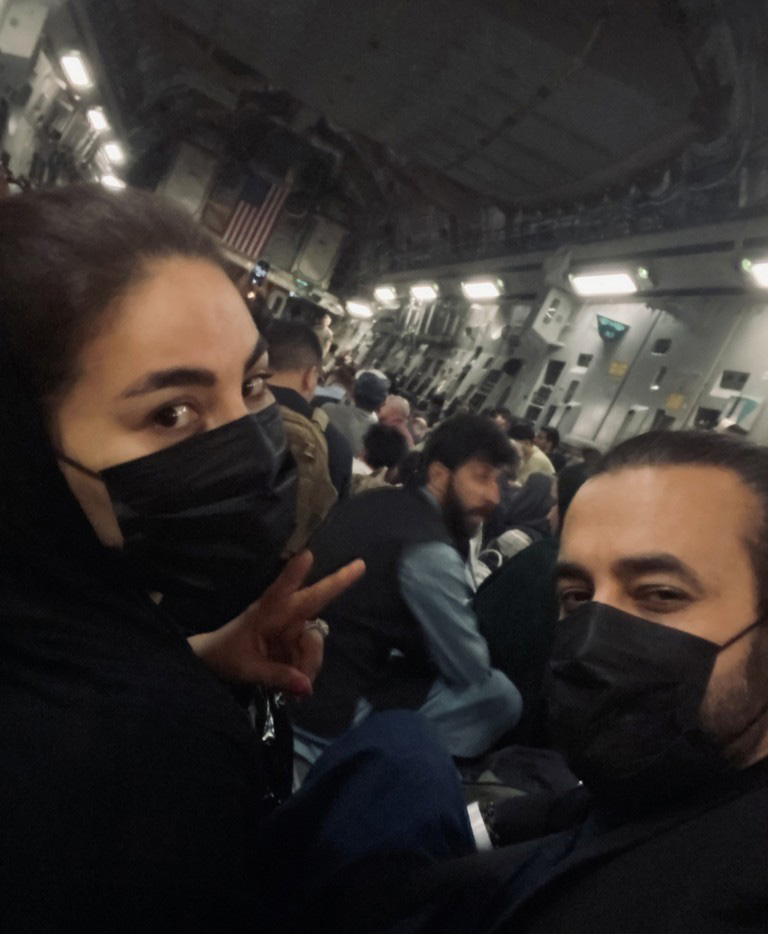 아프간을 탈출하는 아리아나 사예드와 약혼자.[아리아나 사예드 인스타그램 캡처]