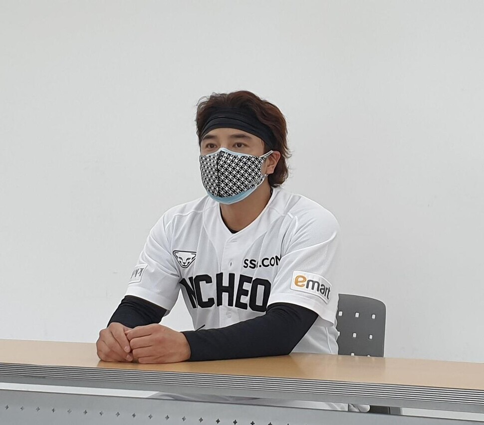 SSG 랜더스 추신수가 지난 14일 울산 문수구장에서 열린 프로야구 KBO리그 케이티 위즈와 연습경기를 앞두고 인터뷰하고 있다.