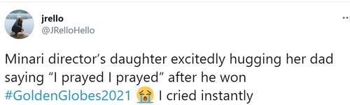 미나리 정 감독과 딸의 모습을 보고 눈물이 났다는 한 네티즌 [트위터 게시물 캡처]