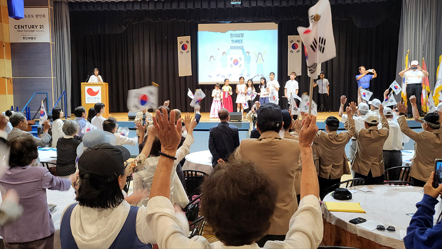 기념식은 한인회 여름캠프에 참가한 어린이들이 무대에 나와 퍼포먼스를 하고, 어린이 대표들이 ‘대한독립 만세’를 선창, 손에 손에 태극기를 든 참석자들과 함께 만세 삼창을 했다. 이어 참석자 모두 광복절의 노래를 제창하는 것으로 기념식을 마무리 했다.