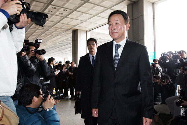 한상율 전 국세청장이 그림로비, 연임로비, 태광실업 특별세무조사 과정의 직권남용 등과 관련해 검찰 조사를 받기 위해 28일 오후 서울 서초구 서울중앙지검으로 들어서고 있다. 2011.2.28. 연합
