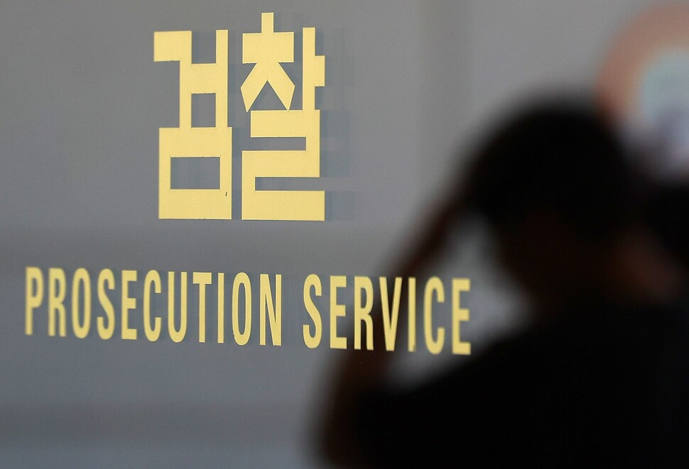 5일 서울 서초구 서울중앙지검 검찰 로고에 직원의 모습이 비치고 있다. 연합