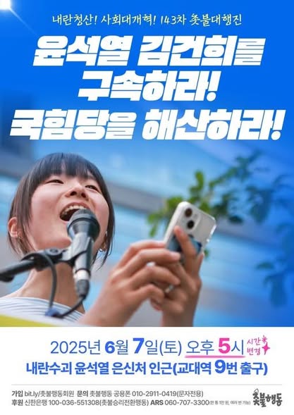 | '중단없는' 촛불대행진…이젠 "윤건희 구속·내란당 해체" (0) | 2025.06.07 |