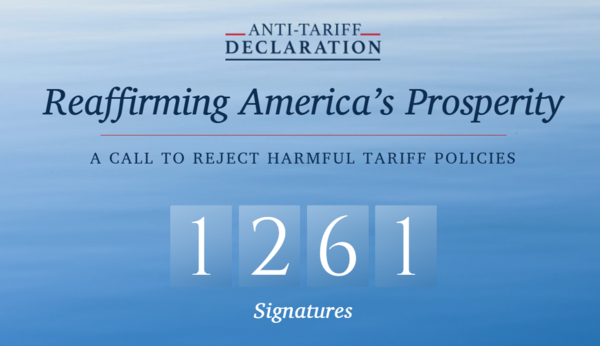 노벨 경제학상 수상자인 제임스 헤크먼 시카고대(2000년), 버넌 스미스(채프먼대) 교수들을 포함한 미국 경제학자들은 도널드 트럼프 미국 대통령의 보호주의 관세 정책에 반대하는'반관세 선언'(Anti-Tariff Declaration)을 통해 이렇게 비판했다. 이들은 18일부터 서명 작업을 들어갔으며, 21일 오전 9시(미 동부 시간) 현재 1256인이 서명했다. 1996년 대통령 예비후보였던 텍사스주 출신 필 그램 전 상원의원, 조지 W 부시 대통령 경제 고문을 맡았던 니컬러스 그레고리 맨키우 하버드대 교수 등도 포함됐다.