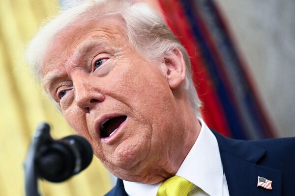 도널드 트럼프 미국 대통령이 18일 백악관 집무실에서 메디케어 및 메디케이드 서비스센터(CMS) 메흐메트 오즈 센터장 취임식에서 발언하고 있다. 2025. 04. 18 [AFP=연합]