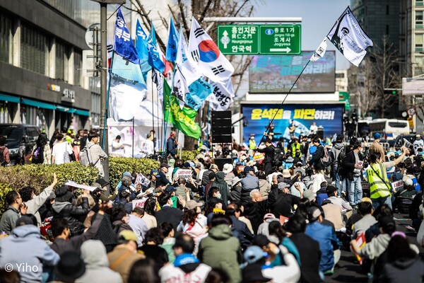 윤 대통령 탄핵이 지연되며, 불안을 넘어 현실화하는 사회적 위기를 우려하는 목소리도 컸다. 시민 성예림 씨는 “선고가 늦어지며 내란 세력이 더 기승을 부린다. 헌재가 가루가 될 수 있다는 말을 서슴없이 뱉으며 폭력도 불사한다”고 우려했다. 지난 20일 헌재 주변에서 더불어민주당 의원들이 윤 대통령 지지자에게 폭행당하는 일까지 벌어진 상황을 되짚은 것이다.