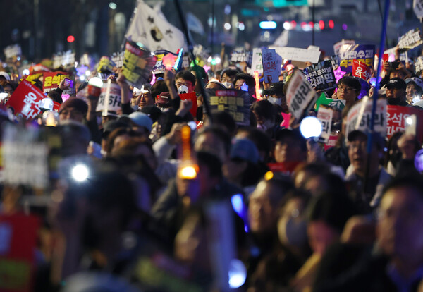 이날 범시민대행진에서는 시민 자유 발언들 사이에 문화 공연이 이어졌다. 소리꾼 오단해, 밴드 코토바, 민중가수연합 등이 노래로 지친 시민들을 위로하고 투쟁 열기를 끌어올렸다. 시민들은 본집회를 마친 뒤, 종로와 안국역을 거쳐 동십자각으로 다시 돌아오는 길을 행진했다. < 민들레 김성진 기자 >