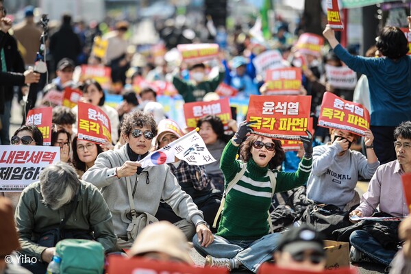 “윤석열을 당장 파면하라. 윤석열을 당장 파면하라…”