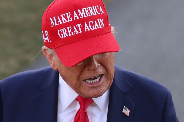도널드 트럼프 미국 대통령이 28일 볼로디미르 젤렌스키 우크라이나 대통령과의 백악관 정상회담이 결렬된 뒤 플로리다 팜비치의 마러라고 별장으로 떠나기에 앞서 취재진의 질문에 답하고 있다. 2025.2.28 AFP 연합
