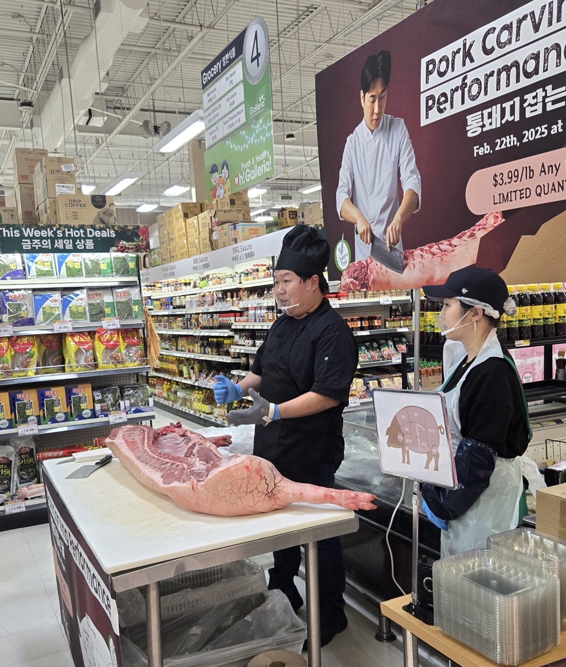 ‘돼지 잡는 날’은 통돼지를 현장에서 다양한 부위별로 해체하여 프리미엄 고기로 변신시키는 짜릿한 순간을 라이브로 선보이는 이벤트로, 이날 행사에서도 통돼지 해체쇼와 함께 프리미엄 고기를 현장에서 직접 만날 수 있는 아주 특별한 기회를 제공해 방문 고객들에게 큰 즐거움을 안겼다. 특히 갤러리아 슈퍼마켓의 최고 ‘정형의 달인’이 갈매기살, 항정살, 가브리살 등 특수 부위부터 삼겹살, 목살, 등심 등 다양한 인기 부위까지, 원하는 고객들에게 신선하고 건강하게 키운 온타리오산 프리미엄 돼지고기를 현장에서 초특가로 구매할 수 있는 기회를 제공해 인기를 끌었다.