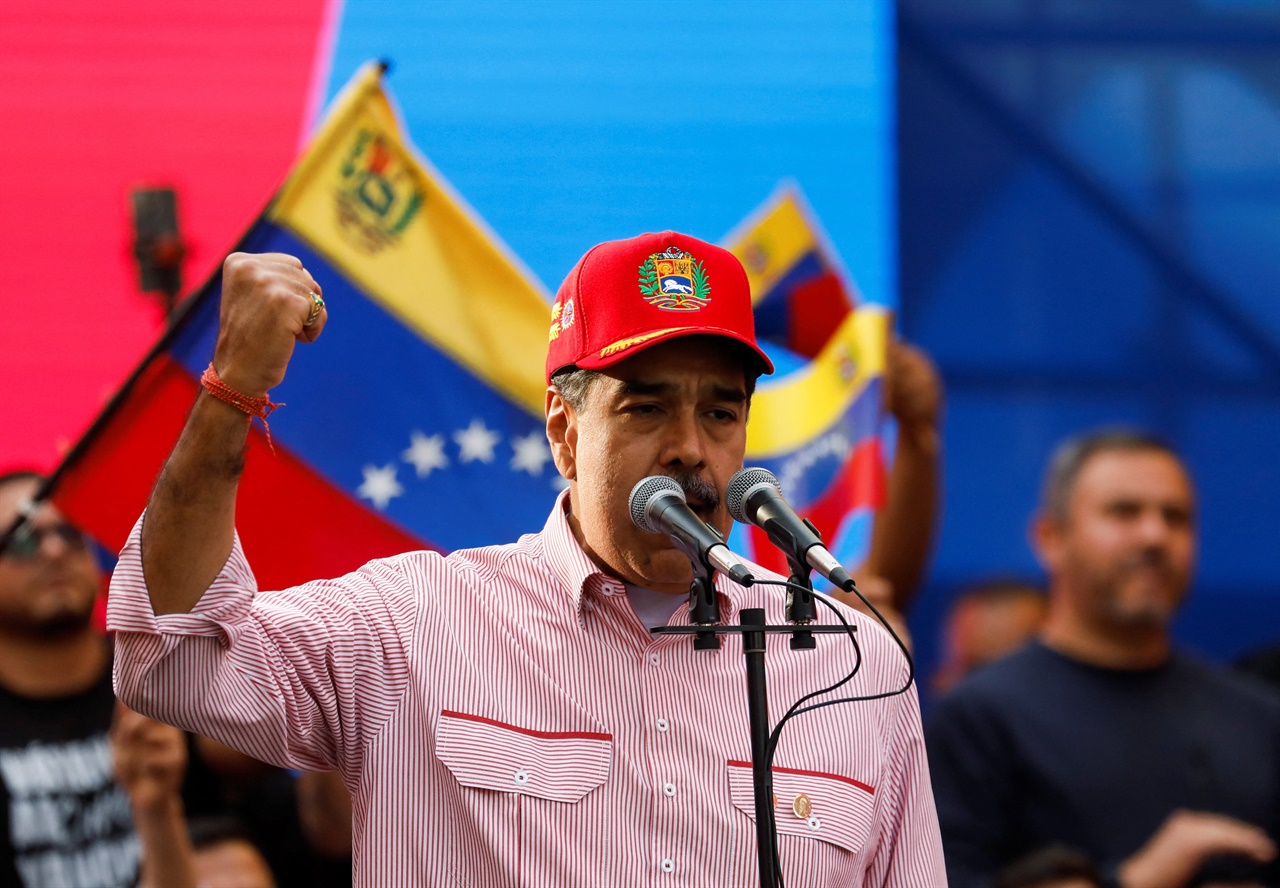 ▲베네수엘라의 니콜라스 마두로 대통령이 지난 12월 1일 베네수엘라 카라카스에서 열린 지역사회 기반 단체들의 취임 선서식에서 연설하고 있다. 도널드 트럼프 미국 행정부가 마두로 정부에 대한 압박을 강화하는 가운데 열린 행사다. ⓒ 로이터/연합뉴스관련사진보기