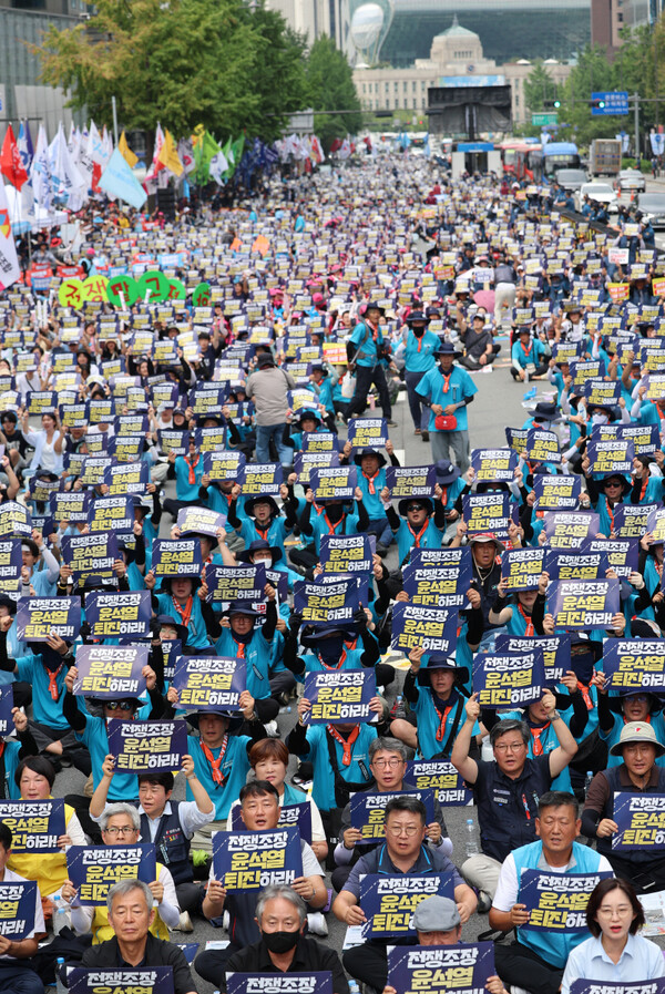 이제 주저하지 말고, 민생을 파탄시키고 전쟁 위기를 조장하고 국민의 신뢰를 잃은 윤석열 정권을 물러나라고 요구합시다.