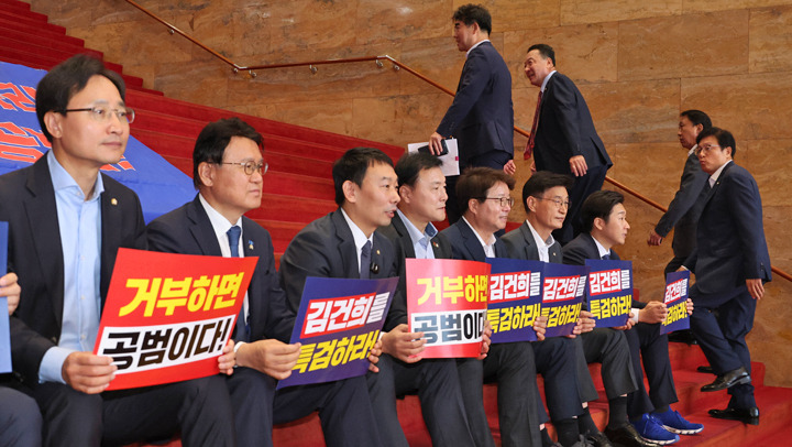 앞서 민주당은 지난달 5일 21대 국회보다 강화된 ‘김건희 특검법’을 재발의했다. 도이치모터스 주가 조작과 명품가방 수수 및 국민권익위 조사 외압, 코바나컨텐츠 전시회 뇌물성 협찬, 채 상병 사망 사건 관련 임성근 등 구명 로비, 장차관 인사 개입, 22대 총선 공천 개입 의혹 등 김 여사가 연루된 8가지 의혹을 수사 대상으로 규정했다.
