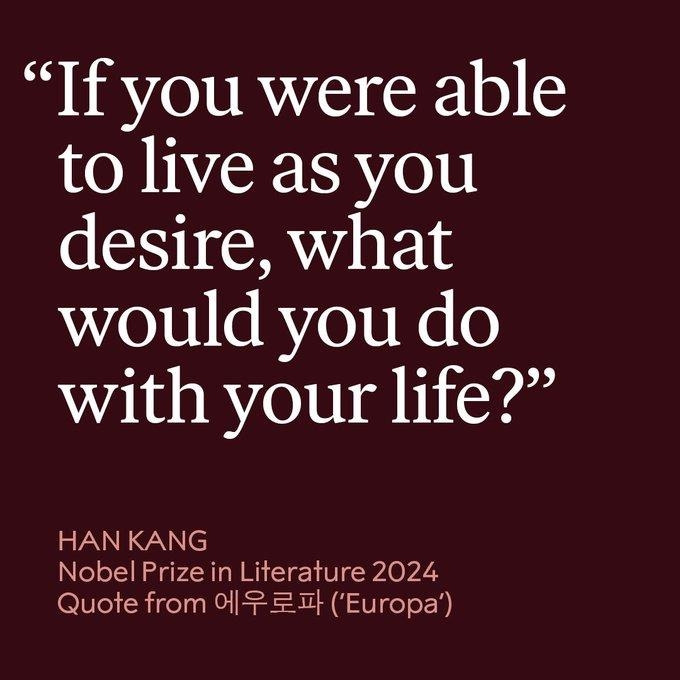 이날 스웨덴 한림원은 올해 노벨 문학상 수상자로 한강을 선정했다고 발표하면서 그의 작품이 "역사적 트라우마에 맞서고 인간 삶의 연약함을 드러낸 강렬한 시적 산문"이라고 평가했다.