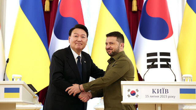 한국과 우크라이나의 전략적 소통 강화에 방점이 놓인 양국 정상의 29일 통화는 북한·러시아의 위험한 움직임을 견제하려는 외교적 대응에 초점이 맞춰져 있지만, 한국의 우크라이나에 대한 살상무기 지원으로 이어지는 첫 단계가 될 것이란 우려도 함께 나온다.