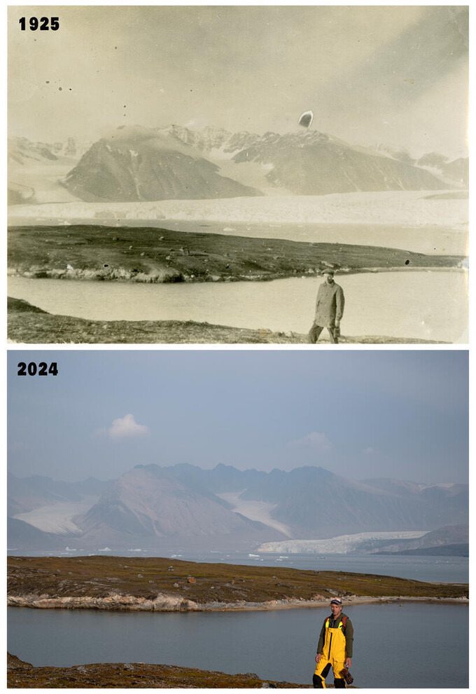 공개된 사진들을 보면, 한때 장대한 산맥을 가로막은 광활한 벽이었던 빙하가 불과 57~106년 만에 거의 사라진 것을 볼 수 있다. 길이가 18㎞에 달하는 빙하 블룸스트랜드브린의 한 구역은 1918년 여름께 빙하가 산맥을 완전히 가려 산 꼭대기만 보였지만, 지난 8월 촬영한 모습에서는 빙하벽이 녹아내려 거의 남아있지 않다. 1967년 사진이 남아있는 두 곳의 빙하 또한 비슷한 상황이었다. 1920~1960년대 사람이 등장하는 사진들도 비슷한 구도로 재현해 찍었는데, 배경의 빙하들이 눈에 띄게 줄어든 모습을 볼 수 있다.