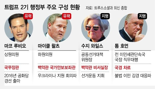 ‘반이민 · 반우크라’…트럼프 2기 ‘강경파’ 외교안보라인 윤곽