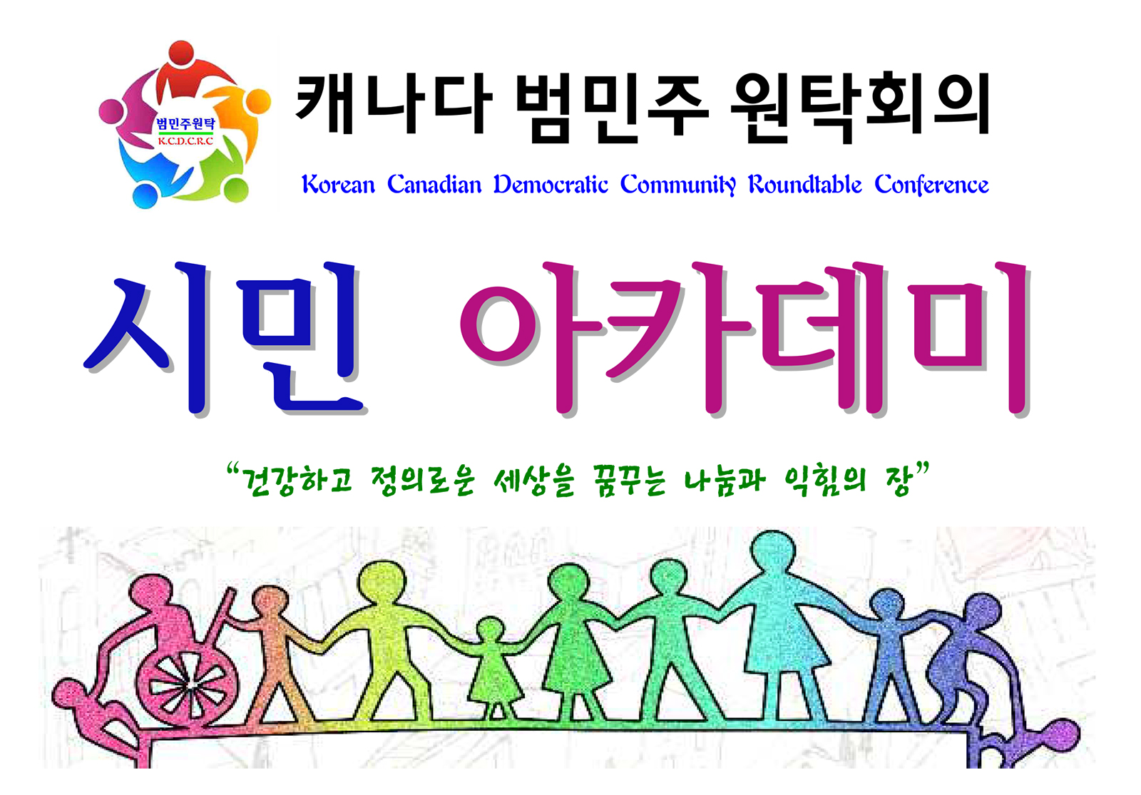 캐나다 범민주원탁회의(Korean Canadian Democratic Community Roundtable Conference)가 월례「시민 아카데미」의 제53차 강좌를 송년 연합모임을 겸해 11월28일(목) 오전 11시부터 쏜힐 사리원식당(7388 Yonge St. L4J 8K2)에서 개최한다.