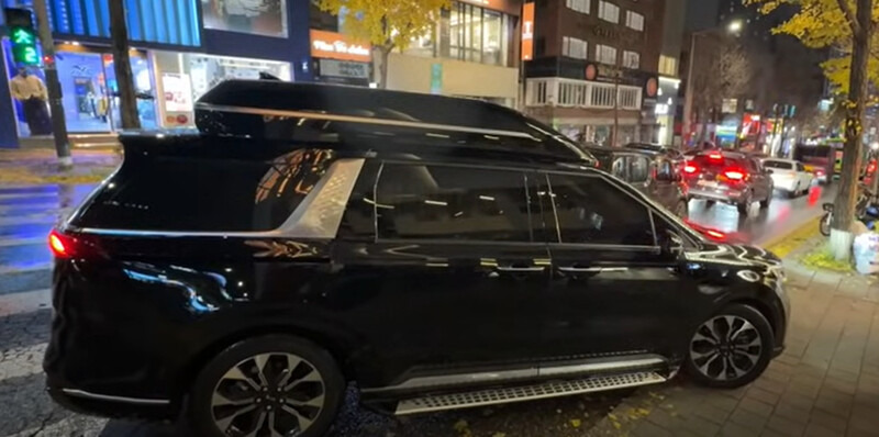 한동훈 국민의힘 대표가 탄 차량이 서울 마포구 홍익대 앞 횡단보도를 지나고 있다. 유튜브 화면 갈무리