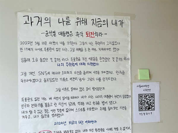 대학생들, 대자보-시국선언..."윤석열에 분노... 내 무기력함이 더 미웠다"