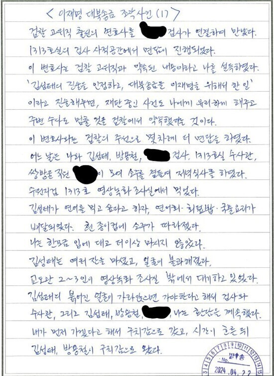 앞서 김 변호사는 최근 쌍방울그룹의 법인카드 거래내역을 공개하고, “2023년 5월29일 오후 5시40분, 이 전 부지사가 지속해 지목했던 연어전문점(수원지검 인근 식당)에서 4만9100원을 결제한 내역이 확인됐다”고 주장했다.
