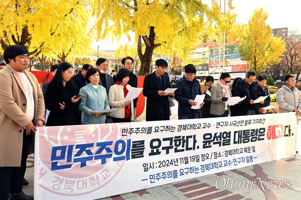 경북대 재학생들로 구성된 '민주주의를 요구하는 경북대 학생모임'은 오는 3일 경북대 북문 앞에서 시국선언문을 발표할 예정이다.