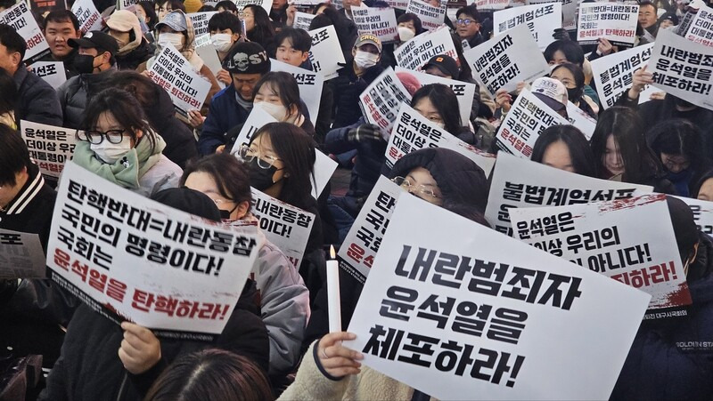 직장인 정유은(32)씨는 표결 종료 소식에 한동안 말을 잇지 못하다가 끝내, “민주주의라서 국민의힘 의원들도 편하게 살았던 게 아닌가. 그들이야말로 민주주의를 누릴 자격조차 없다”며 “매주 나올 것”이라고 다짐했다. 대학생 신지은(22)씨는 “이렇게 추운 날씨에 이렇게 많은 국민이 외쳤는데 국민의힘은 눈 하나 꿈쩍하지 않았다. 촛불은 더 커질 것”이라고 말했다.