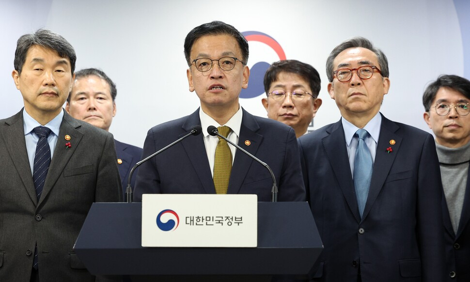 끝으로 최 부총리는 “한덕수 대통령 권한대행 국무총리에 대한 탄핵소추를 재고해 주길 바란다”며 “정부가 경제와 민생에만 몰두할 수 있게 여야 정치권의 협조를 다시 한번 호소드린다”고 요청했다. < 한겨레 박수지 기자 >