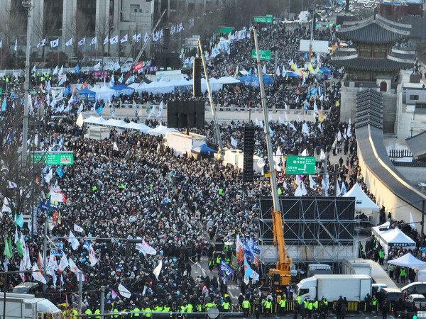 28일 오후 2시 서울 종로구 헌법재판소 인근 안국역 1번 출구 앞에서는 '촛불승리전환행동(이하 촛불행동)'이 개최한 '121차 촛불문화제 전국집중촛불' 집회가 열렸다. 주최 쪽 추산 5만 명의 시민들과 더불어민주당·조국혁신당 등 야당 정치인, 10·29 이태원 참사 유가족 등은 영하권의 추운 날씨에도 거리에 앉아 내란 사태에 대한 규탄과 일상의 회복을 이야기했다. 또 내란 수괴인 윤 대통령을 탄핵 소추하고, 공권력에 맞서 새로운 시대를 열어가는 서로를 향해 박수로 응원하고 위로했다.