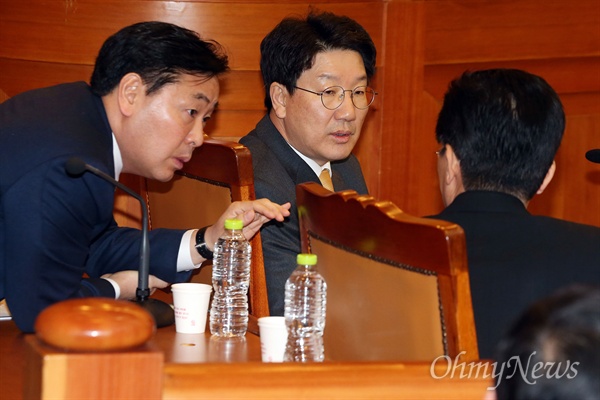 ▲8차 변론 참석한 탄핵 청구인측2017년 1월 23일 서울 종로구 재동 헌법재판소에서 열린 박근혜 대통령 탄핵심판 제8차 공개변론에서 권성동 법사위원장 등 청구인측이 참석하고 있다. ⓒ 사진공동취재단