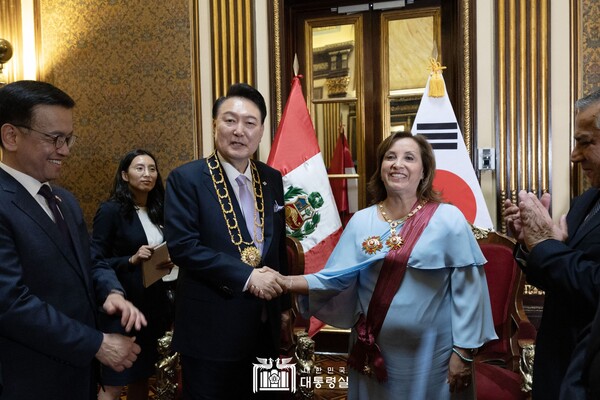 볼루아르테의 페루는 지난해 11월 아태경제협력체(APEC) 정상회의 의장국으로 주요 20개국(G20) 정상회의가 열린 브라질과 함께 친위 쿠데타를 앞둔 윤석열의 마지막 순방국이었다. < 민들레 김진호 기자 >