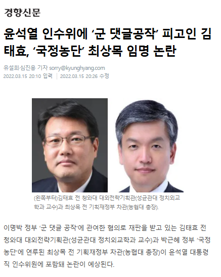 윤 정권 인수위 때 공직 복귀한 최순실 국정농단 연루 혐의자