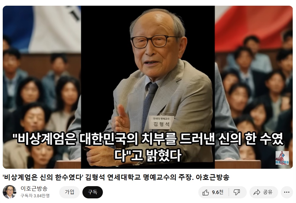 유튜브 이호근방송 "'비상계엄은 신의 한수였다' 김형석 연세대학교 명예교수의 주장"출처링크