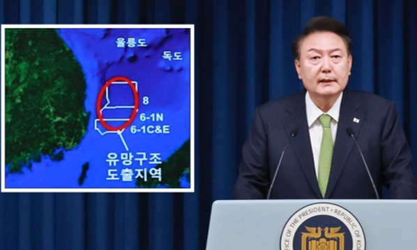 당시 윤 대통령은 “포항 영일만 앞바다에서 막대한 양의 석유와 가스가 매장돼 있을 가능성이 높다는 물리탐사 결과가 나왔다”며 “최근 140억배럴에 달하는 석유가 가스가 매장돼 있을 가능성이 매우 높다는 결과가 나왔고, 유수 연구 기관과 전문가들의 검증도 거쳤다”고 밝혔다.