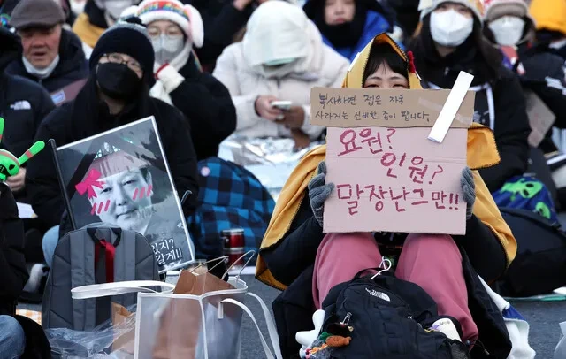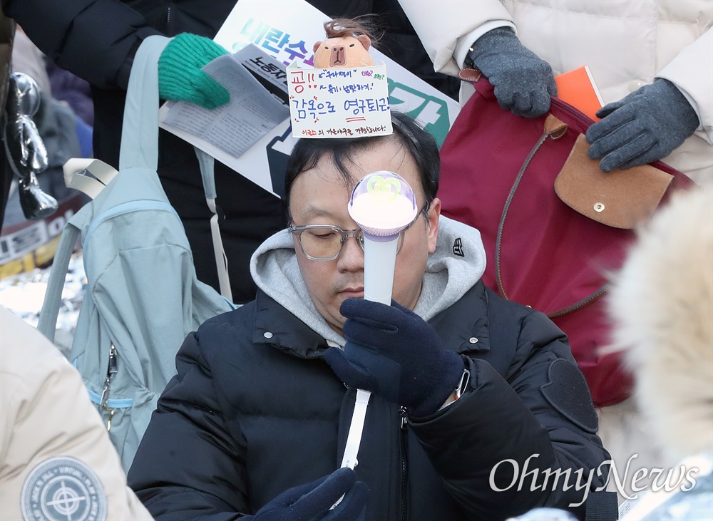 한낮에도 체감온도가 영하 10도에 가까웠던 서울 광화문 앞 사직로. 1982년생 동갑내기 부부인 김태희씨는 아이유 응원봉을, 조현정씨는 뉴진스 응원봉을 각각 손에 들고 '탄핵 광장'에 나왔다. 한파 특보도 그들을 막을 수 없었다.