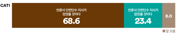 이념 성향별로도 차이를 보였다. 진보층(93.0%)과 중도층(76.1%)에서는 ‘지시가 있었을 것’이란 응답이 절대적으로 많았다. 반면, 보수층에서는 ‘지시가 없었을 것’(51.0%)이라는 응답이 ‘지시가 있었을 것’ (37.4%)보다 13.6%p 높아 보수층 내에서도 의견이 엇갈리는 양상을 보였다.